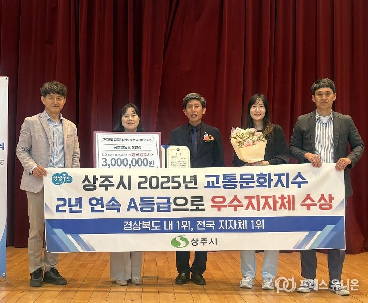 교통문화지수는 국토교통부가 매년 전국 229개 기초 지자체를 대상으로 지자체의 교통안전 행정노력도, 운전행태, 보행행태 등에 대한 객관적 조사를 통해 지자체별 교통문화 수준을 분석·평가하여 지역 교통문화 의식을 나타내는 대표적인 지표로, 상주시는 지난 2022년 38위, 2023년 14위로 B등급을 받았고 2024년 3위로 A등급을 받았으며 마침내 2025년 인구 30만 미만 시 그룹 49개 지자체 중 경북도 내 1위, 전국 순위 1위로 수상하게 됐다.