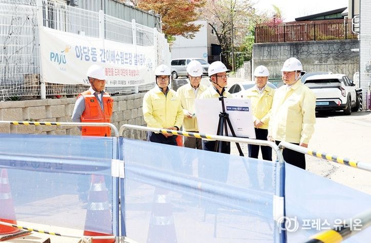 프레스유니온 김성길 기자 | 파주시는 지난 16일, 여름철 자연재난 대책기간(매년 5월 15일~10월 15일)을 앞두고 사전 대비의 일환으로, 야당동 간이배수펌프장 설치사업 현장과 금촌 배수펌프장에 대한 현장점검을 실시했다.