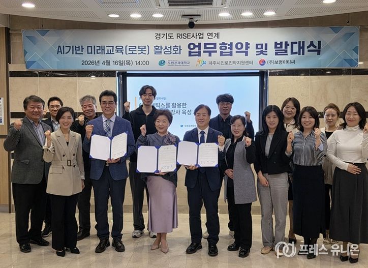 파주시 관계자는 “이번 협약을 통해 지역 학생들에게 수준 높은 인공지능(AI) 기반 미래교육 기회를 제공하고, 전문 강사 협력 체계를 구축해 교육 기반의 질을 한 단계 끌어올리겠다”라고 밝혔다.