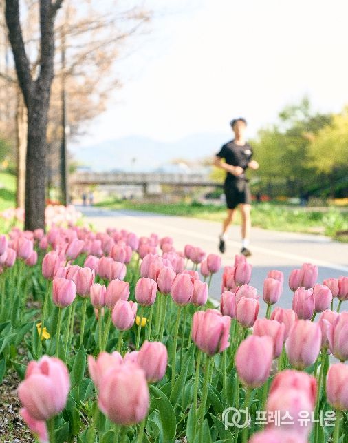프레스유니온 강찬희 기자 | 서울 강동구는 봄을 맞아 화사한 튤립과 수선화가 만개한 고덕천 산책로가 도심 속 힐링 명소로 주목받고 있다고 밝혔다.