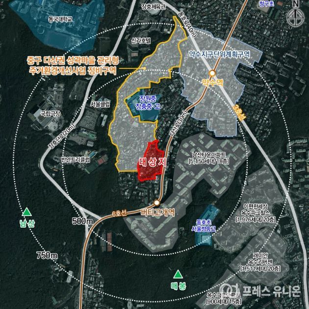 프레스유니온 강찬희 기자 | 남산 숲세권이자 6호선 버티고개역 인근에 위치한 신당9구역에 최고 15층, 500세대 이상 규모의 공동주택이 들어설 전망이다. 서울 중구는 지난해 11월 서울시에 제출한 신당9구역 주택재개발사업 정비계획 변경안이 16일 서울특별시 고시로 최종 확정됐다고 밝혔다.