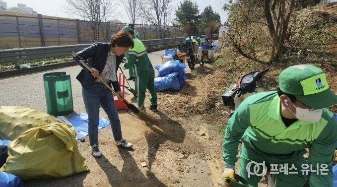 프레스유니온 김성길 기자 | 수원시 권선구 금곡동 행정복지센터는 지난 15일 금곡동 112-24 일원에서 권선구 환경위생과 공무원 및 환경관리원 12명과 함께 무단투기 폐기물을 정비했다.