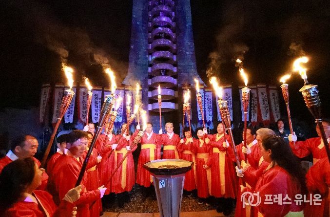 프레스유니온 강찬희 기자 | 의령 충익사의 밤, 의병의 혼을 상징하는 불씨가 다시 타올랐다.