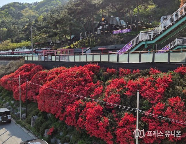 특히 옛 철길을 따라 이어지는 철쭉길은 병풍처럼 펼쳐진 꽃 풍경이 인상적이다.