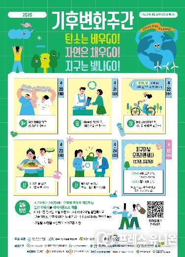 프레스유니온 강찬희 기자 | 진주시 탄소중립지원센터는 아름다운가게와 함께 4월 20일부터 24일까지 ‘2026 기후변화주간 온·오프라인 행사’를 개최한다.