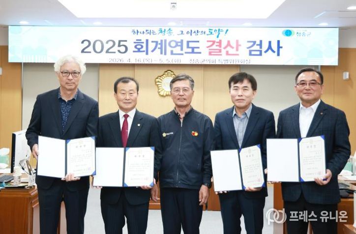 결산검사는 4월 16일부터 5월 5일까지 20일간 의회 특별위원회실에서 실시되며, 위원들은 청송군 2025년도 예산 집행 전반에 대해 점검한 뒤, 문제점 및 개선 사항을 담은 결산검사 의견서를 의회에 제출할 예정이다.