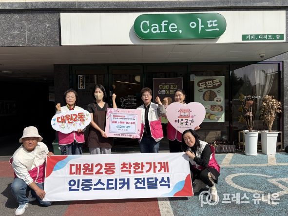 프레스유니온 김성길 기자 | 오산시 대원2동은 지난 16일 지역 내 카페 ‘아뜨’를 ‘착한날개(착한가게)’ 14호점으로 지정하고 인증스티커를 전달했다고 밝혔다.