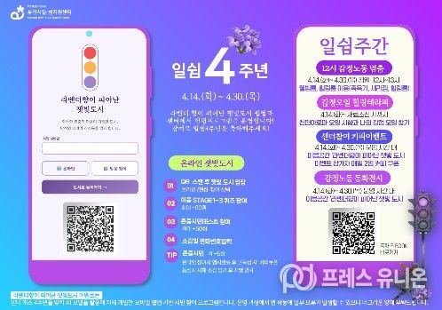 센터는 “개소 4주년을 맞아 디지털 기술을 접목한 새로운 시도로 시민들에게 다가가고자 한다”며 “동화 속 라벤더 향기가 잿빛 도시를 변화시켰듯, 일쉼주간을 통해 감정노동자의 일상이 존중과 응원으로 채워지길 바란다”고 밝혔다.