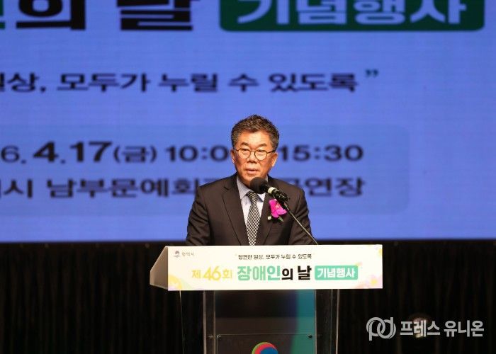 프레스유니온 강찬희 기자 | 평택시의회는 4월 17일, 남부문화예술회관 대공연장(평택시 비전동)에서 열린‘제46회 장애인의 날’ 기념행사에 참석해 포용적인 지역사회 조성에 힘을 보탰다.