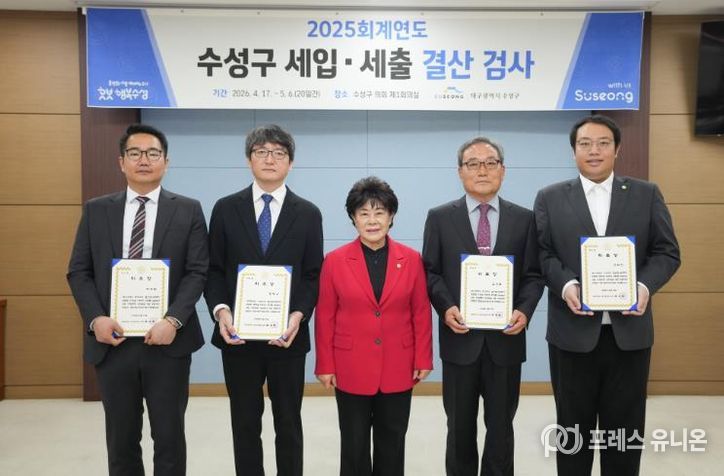 조규화 수성구의회 의장은 위촉식에서 “결산검사는 단순한 사후 점검을 넘어 향후 재정운영의 방향을 제시하는 중요한 환류 과정”이라며 “구민의 소중한 세금이 올바르게 사용됐는지 면밀히 살펴보고, 개선이 필요한 부분에 대해서는 건설적이고 합리적인 의견을 제시해 주시기 바란다”고 말했다. 이어 “균형 있는 시각과 책임감 있는 검사를 통해 보다 효율적인 재정운영의 기반을 마련해 주시기를 기대한다”고 덧붙였다.