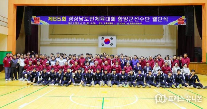 프레스유니온 강찬희 기자 | 함양군은 제65회 경상남도민체육대회 출전을 앞두고 4월 17일 오후 2시 함양군 고운체육관에서 선수단 결단식을 개최했다.