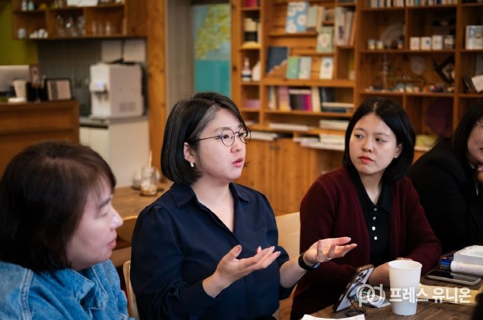 프레스유니온 강찬희 기자 | 용혜인 국회의원(기본소득당 안산시지역위원장)이 17일 오전 안산시 사동 복합문화공간 마을숲 사회적협동조합에서 사동 주민들과 주민자치 활성화를 주제로 간담회를 가졌다.