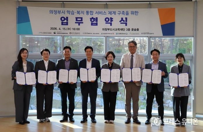 프레스유니온 김성길 기자 | 의정부도시교육재단은 4월 15일, 관내 7개 복지관과 함께 ‘의정부시 학습·복지 통합 서비스 체계 구축’을 위한 업무협약을 체결했다.
