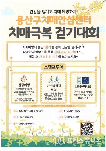 행사 참여는 용산구치매안심센터 전화나 포스터 내 정보무늬(QR코드)를 통해 신청할 수 있다. 행사 당일 현장 등록도 가능하다.