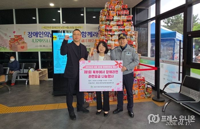 프레스유니온 강찬희 기자 | 포항시북부장애인종합복지관은 지난 17일, 다가오는 장애인의 날(4월 20일)을 맞아 라면 기부 및 문화 체험행사를 개최했다.