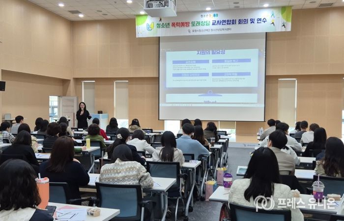 프레스유니온 강찬희 기자 | 포항시청소년재단 청소년상담복지센터는 학교폭력 예방과 건강한 학교문화 조성을 위해 지난 17일 북구청소년문화의집에서 ‘또래상담 지도교사 연합회 및 연수’를 개최했다.
