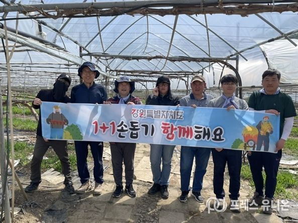 프레스유니온 강찬희 기자 | 강원특별자치도 축산기술연구소는 본격적인 농번기를 맞아 4월 18일, 춘천시 사북면 고성리 포도 재배 농가를 찾아 ‘농촌 일손 돕기’ 봉사활동을 실시했다.