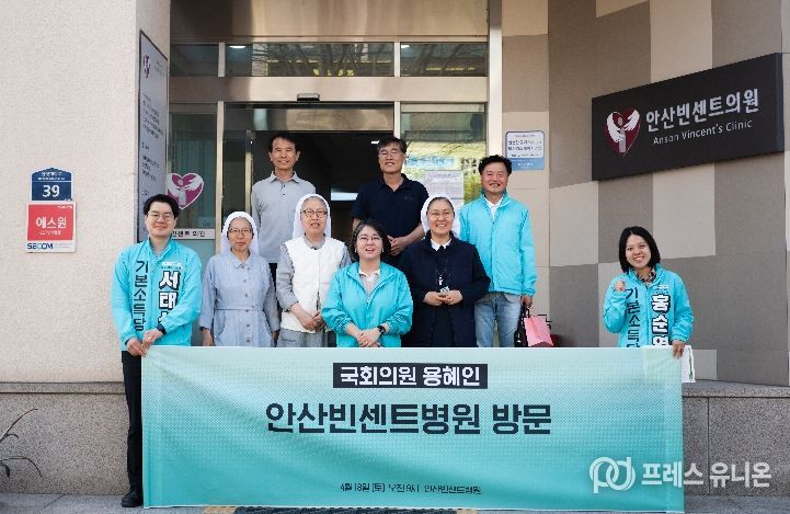 안산빈센트의원은 열악한 여건에도 외국인 근로자, 소년소녀가장, 노숙자 등 사회적 약자를 대상으로 무료 진료를 이어온 의료기관이다. 용 의원은 "후원과 자원봉사 인력이 넉넉지 않은 상황에서도 무료 진료를 꿋꿋이 이어온 것에 깊이 감사하다"며 "약자를 돌보는 이 실천이 계속 이어져 지역 의료 사각지대를 메울 수 있도록 다방면으로 돕겠다"고 밝혔다.