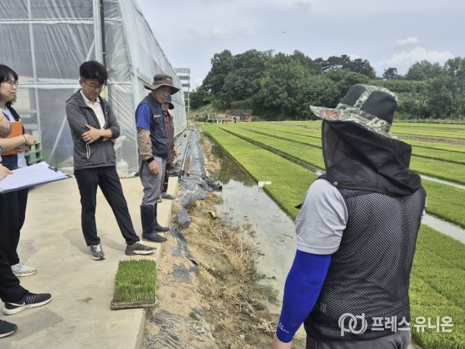 프레스유니온 김성길 기자 | 충북 진천군농업기술센터는 2025년산 벼 종자의 발아율 저하와 발아 지연 현상에 대응하기 위해 오는 5월 22일까지 관내 7개 읍·면과 벼 공동육묘장 15개소를 대상으로 못자리 관리 현장 지도를 강화한다고 밝혔다.
