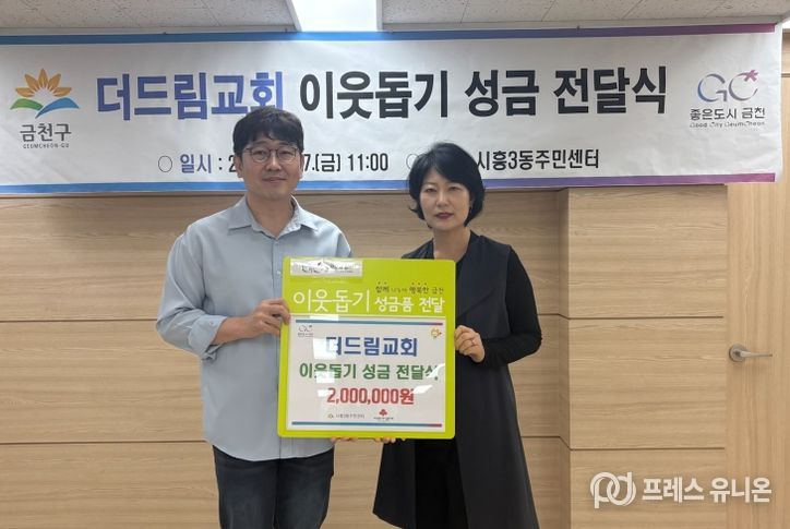 프레스유니온 강찬희 기자 | 금천구는 지난 17일 시흥3동에 소재한 더드림교회에서 관내 저소득층을 위해 성금 200만 원을 기부했다고 밝혔다.