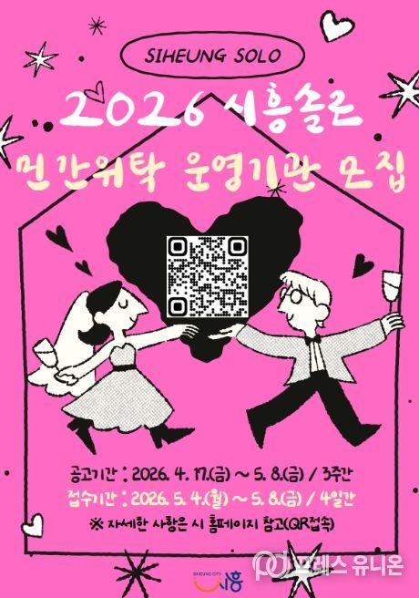 프레스유니온 김성길 기자 | 시흥시는 청년층의 건전한 만남 기회를 확대하고 결혼에 대한 긍정적 인식 확산 및 지역 정착을 지원하기 위해 ‘2026 시흥솔로(SOLO) 사업’을 추진하고, 이를 운영할 민간위탁 기관을 공개 모집한다.