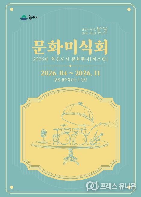 프레스유니온 강찬희 기자 | 원주시는 오는 21일 낮 12시, 건강보험심사평가원 1사옥 앞 야외 공연을 시작으로 ‘2026년 혁신도시 문화미식회’의 막을 올린다. 이어 25일 오후 2시에는 혁신도시 미리내사거리 분수광장에서 버스킹 공연을 진행한다.