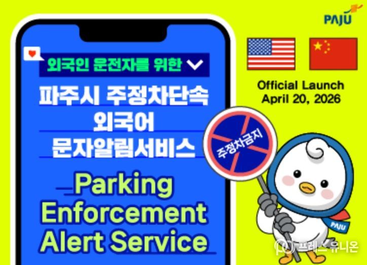 프레스유니온 김성길 기자 | 파주시는 4월 20일부터 외국인 운전자를 대상으로 한 ‘주정차 단속 외국어 문자 알림 서비스’를 시행한다.