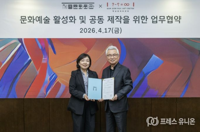 프레스유니온 김성길 기자 | 경기문화재단 백남준아트센터와 재단법인 세종문화회관은 4월 17일, 동시대 예술의 담론 확장과 지속가능한 창작 생태계 조성을 위한 업무협약(MOU)을 체결했다. 이번 협약은 양 기관의 상호존중과 신뢰를 바탕으로, 서울과 경기 지역을 연결하는 광역 문화권 공동제작 모델을 구축하기 위한 협력의 출발점으로 마련됐다.