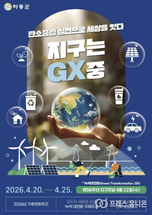 프레스유니온 강찬희 기자 | 하동군은 제56주년 지구의 날을 맞아 4월 20일부터 24일까지 ‘제18회 기후변화주간’을 운영한다고 밝혔다.