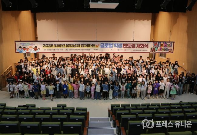프레스유니온 강찬희 기자 | 천안시청소년재단 산하 천안시청소년복합커뮤니티센터가 지난 18일 센터 대공연장에서 ‘2026 외국인 유학생과 함께하는 글로벌 학생 멘토링’ 개회식을 성황리에 개최했다.