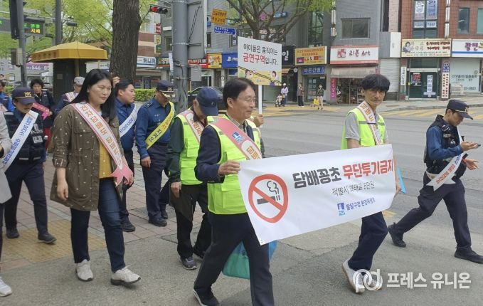 프레스유니온 김성길 기자 | 수원시 팔달구는 지난 17일, 수원역 로데오거리 일대에서 금연 실천과 담배꽁초 무단투기 근절을 위한 합동 캠페인을 실시했다.