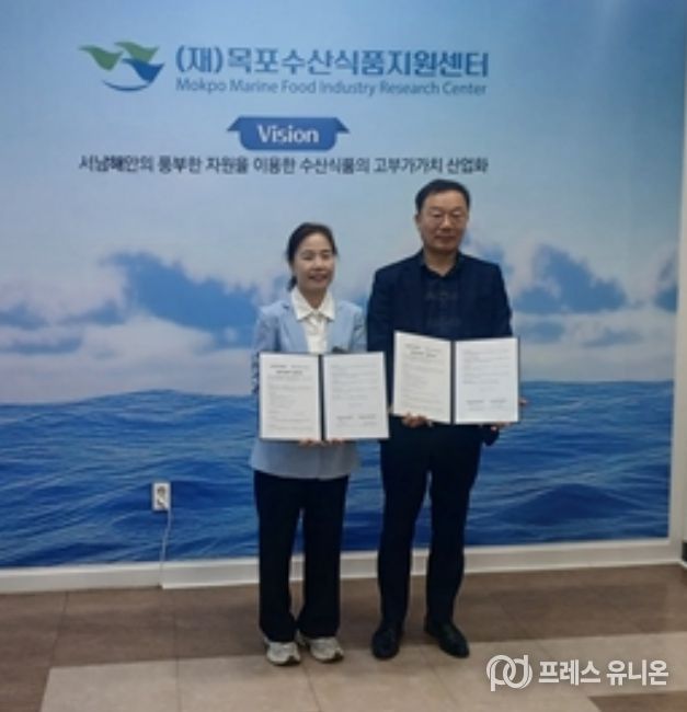 프레스유니온 강찬희 기자 | (재)목포수산식품지원센터는 지난 16일 전남서부근로자건강센터와 업무협약을 체결하고 임직원의 건강증진과 산업재해 예방을 위한 통합 건강관리 프로그램을 추진한다고 밝혔다.