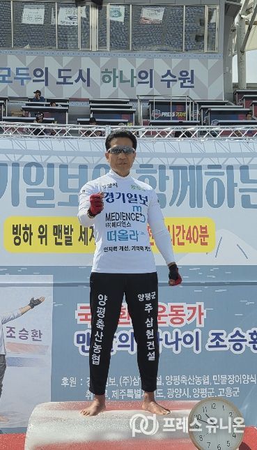 프레스유니온 김성길 기자 | 양평군은 지난 19일 경기도 수원종합운동장에서 양평군 홍보대사이자 국제 환경운동가로 활동 중인 ‘맨발의 사나이’ 조승환 씨가 인간의 한계를 넘어서는 기록을 세웠다고 밝혔다.