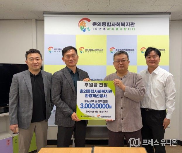 프레스유니온 김성길 기자 | 도시환경실업(주)는 지역사회 복지환경 개선과 나눔 문화 확산을 위해 춘의종합사회복지관에 환경개선공사 후원금 300만원을 전달했다. 이번 후원은 복지관 시설 환경을 개선해 지역 주민들이 보다 안전하고 쾌적한 환경에서 복지서비스를 이용할 수 있도록 지원하기 위해 마련됐다.