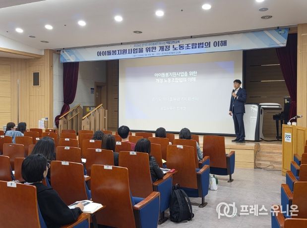 프레스유니온 김성길 기자 | 경기도아이돌봄광역지원센터는 20일 경기도인재개발원 다산홀에서 도내 31개 시군 아이돌봄서비스 제공기관 종사자와 관련 공무원을 대상으로 ‘2026년 노동조합법 이해 교육’을 개최했다.