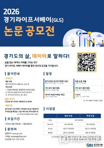 경기연구원은 이번 조사를 통해 확보한 대규모 데이터를 기반으로 데이터 중심의 과학적 행정을 뒷받침하고, 증거 기반 연구 역량을 한층 강화하는 데 주력할 방침이다. 연구 데이터의 지속가능성을 확보하고 창의적인 분석 아이디어를 통해 정책 활용도를 높이기 위해 ‘2026년 경기 라이프 서베이(GLS) 논문 공모전’을 개최할 예정이며, 이를 통해 도출된 제안과 분석 결과를 실질적인 정책 근거자료로 활용할 계획이다.