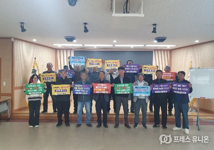 프레스유니온 강찬희 기자 | 한국 농촌지도자 홍천군연합회(회장 한상기)는 4월 17일 농업기술센터 제1교육장에서 임원진 및 농업기술센터 관계자 등이 참석한 가운데, 국제 정세 불안에 따른 비료 수급 문제에 대응하기 위해 '중동전쟁 대응 적정 시비 실천 운동 캠페인'을 실시했다.
