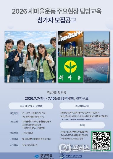 프레스유니온 강찬희 기자 | 경상북도와 박정희대통령기념재단은 청년세대의 새마을운동에 대한 이해도를 높이고 가치 확산을 위해 ‘2026 새마을운동 주요현장 탐방교육’을 운영하고 참가자를 모집한다.