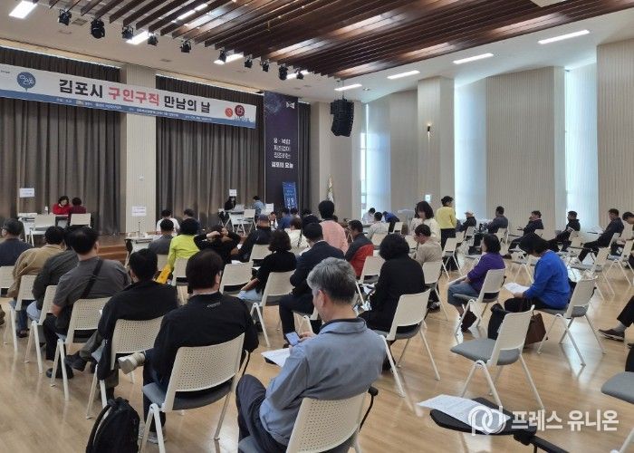프레스유니온 강찬희 기자 | 김포시가 지난 16일 김포제조융합혁신센터 컨벤션홀에서 '제3회 구인·구직 만남의 날'을 운영, 106명의 구직자가 현장 면접에 참여했다.