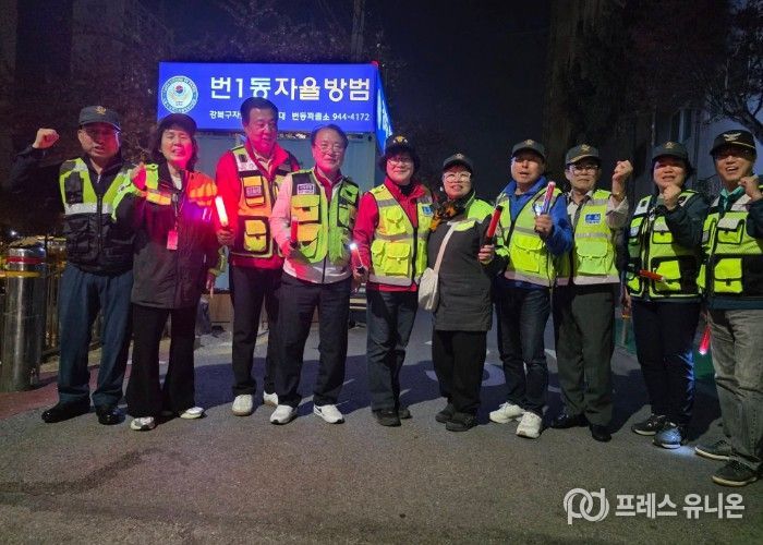 프레스유니온 강찬희 기자 | 강북구의회 유인애 의원(번1·2동, 수유2·3동)이 지난 13일 밤 번1자율방범대(대장 김인숙) 대원들과 함께 지역 내 야간 순찰 활동에 참여하며 주민 안전 점검에 나섰다.