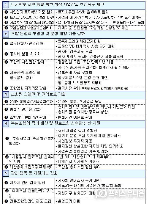 사업이 완료된 조합은 1년 이내 해산총회 개최를 의무화하고 정당한 사유없이 미해산 시 지자체가 직권으로 해산할 수 있는 근거도 마련한다.