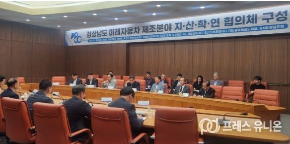 프레스유니온 강찬희 기자 | 경상남도는 20일 경남대학교 한마미래관에서 도내 대학, 기업, 금융기관, 유관기관 등 총 13개 기관이 참여하는 ‘미래자동차 제조분야 지산학연 협의체’ 발족식을 개최하고, 지역 주도 인재양성 체계 구축에 나선다.