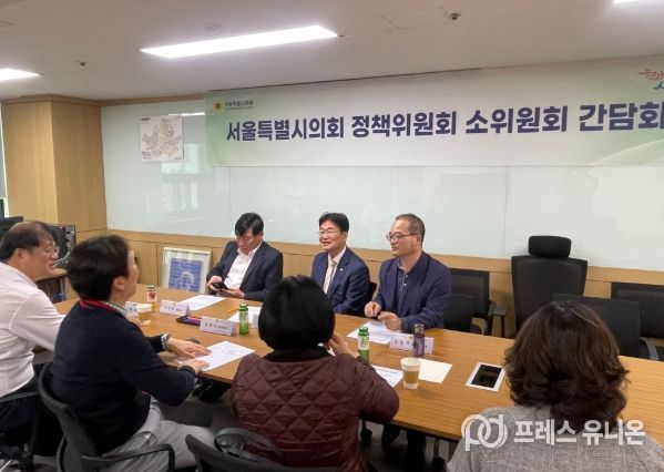 프레스유니온 강찬희 기자 | 김용일 서울특별시의회 정책위원장(국민의힘, 서대문4)은 4월17일 오전 11시 정책위원회 2소위원회 간담회를 열고 청년주택 관련 주제를 과제로 선정한 2소위원회 위원들과 다양한 연구방안 등을 논의했다.