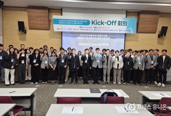 21일 전남대학교에 따르면, 전남대학교 산학협력단(생체재료개발센터)은 지난 4월 13일 김대중컨벤션센터에서 산업통상자원부 산업혁신기반구축사업 『바이오인터페이싱 인체이식형 생체흡수성 의료기기 실증기반구축』 사업의 ‘2026년도 Kick-off 회의’를 개최했다.
