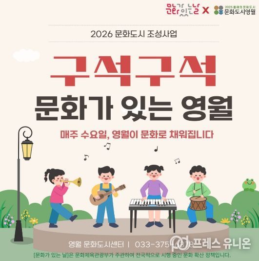 프레스유니온 강찬희 기자 | (재)영월문화관광재단은 지역 주민이 일상 가까이에서 문화를 즐길 수 있도록 ‘구석구석 문화가 있는 영월’ 프로그램을 운영한다.