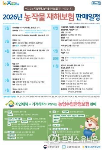 4월부터 벼·대파·고추 등을 시작으로 품목별로 순차 가입이 가능하며, 가입을 바라는 농업인은 가까운 농·축협이나 원예농협에 신청할 수 있다.