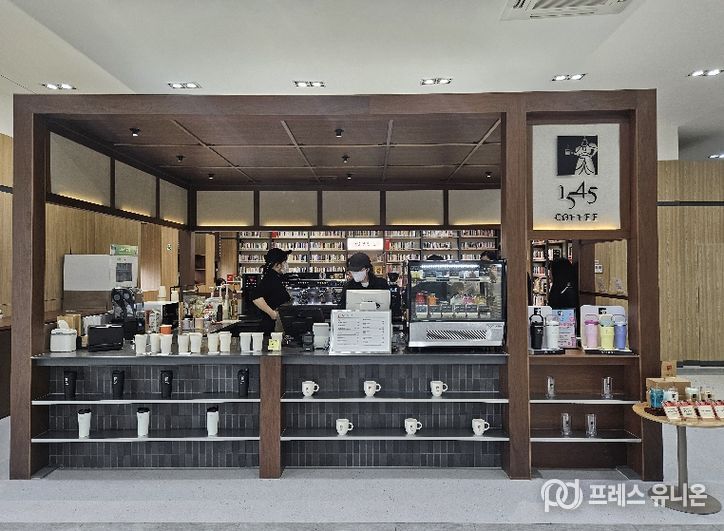 중구청점은 청사 내 기존 카페 공간을 리뉴얼해 조성됐으며, 청사를 방문한 주민들이 편안하게 머물며 휴식과 문화를 함께 누릴 수 있는 공간으로 탈바꿈했다. 공간에는 '1545' 브랜드를 적용한 부스형 카운터와 함께 작은도서관 기능이 더해져, 밝고 따뜻한 분위기 속에서 독서와 휴식을 동시에 즐길 수 있도록 했다. 운영 시간은 평일 오전 8시부터 오후 5시까지다.