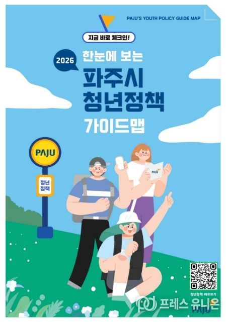 프레스유니온 김성길 기자 | 파주시는 관내 청년들이 다양한 맞춤형 청년정책 정보를 쉽고 빠르게 찾아 혜택을 누릴 수 있도록 '한눈에 보는 2026 파주시 청년정책 가이드맵'을 올해 처음 제작해 배포한다고 밝혔다.