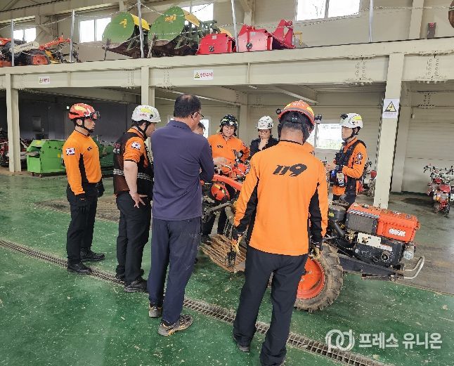 이를 통해 대원들이 현장에 배치된 다양한 농기계를 직접 살펴보고 장비별 특성을 파악할 수 있도록 하여, 사고 현장에서 즉각 활용 가능한 실질적인 대응 능력을 배양했다.