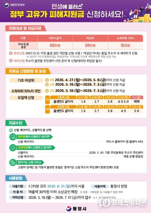 통영시는 부시장을 단장으로 한 전담 운영팀을 구성해, 사전 정책 홍보를 비롯해 신청 및 배부 과정에서의 시민 불편을 최소화하고 신속하게 대응할 방침이다.